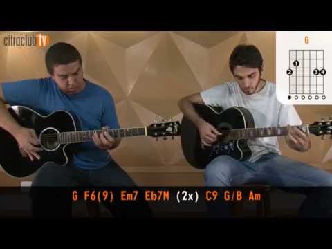 (intro) G F6(9) Em7 Eb7M (2x) C9 G/B Am G (dedilhado intro) (parte 1) G F6(9) E|----3---------------3------3--| B|----3-------------3------3----| G|----0---0-------0------0------| D|--0--------0--3------3--------| A|--2---2-----------------------| E|--3---------------------------| (parte 2) Em7 Eb7M E|--------3----------3-----3------3--| B|------3------3---------3------3----| G|----0------0---------0------0------| D|--2------2---------1------1--------| A|-----------------------------------| E|-----------------------------------| (2x) (parte 3) C9 G/B Am E|--------------------| B|--3-----3-----1-----| G|-----0-----0--------| D|-----------------0--| A|--3-----2-----0-----| E|--------------------| (solo intro) (parte 1) (parte 2) E|-----------------------------|------------------8p7----8-7-8/10~-| B|-----------------------------|---------6-8/10-------8------------| G|-------------4/5-4---4/5-4---|-------7---------------------------| D|-----5p3-5/7-------5-------5-|-7-7/9-----------------------------| A|---5-------------------------|-----------------------------------| E|-7---------------------------|-----------------------------------| (parte 3) |--8-7-5-7-3--| |-------------| |--9-7-5-7-4--| |-------------| |-------------| |-------------| (primeira parte) G9 D Ela achou o meu cabelo engraçado Em7 C9 Proibida Pra mim "no way". G9 D Disse que não podia ficar, Em7 C9 Mas levou a sério o que eu falei G9 D Eu vou fazer de tudo o que eu puder. Em7 C9 Eu vou roubar essa mulher pra mim G9 D Em7 (C9 G/B Am) Eu posso te ligar a qualquer hora, mas eu nem sei o seu nome (dedilhado primeira parte) G9 D E|----------------------------2p3h2------| B|----------0-------------3---------3----| G|------2-------2-------2---2---------2--| D|----0---0---0---0---0------------------| A|---------------------------------------| E|--3------------------------------------| Em7 C9 E|----------3-------------------0------| B|------3-------3-----------3-------3--| G|----0---0---0---0-------0---0---0----| D|--2-------------------2--------------| A|--------------------3----------------| E|-------------------------------------| (final do dedilhado da primeira parte) C9 G/B Am E|--------------------| B|--3-----3-----1-----| G|-----0-----0--------| D|-----------------0--| A|--3-----2-----0-----| E|--------------------| (solo primeira parte - passagens) (1ª passagem) E|------------------7-----------0--------------------| B|--8-7h8p7-----7h8---8---8--------------------------| G|----------7-----------7-7h9-7---7------------------| D|------------9---------------------7/9--------------| A|---------------------------------------------------| E|---------------------------------------------------| (2ª passagem) E|-------------------7---------8---7---5----3--------| B|-10-10-7h8p7-8-7-8---8-----------------------------| G|-----------------------7/9-9---7---7---5--4--------| D|---------------------------------------------------| A|---------------------------------------------------| E|---------------------------------------------------| (3ª passagem) E|------------------------------0--------------------| B|-8-7h8p7--------7-8h7---8--------------------------| G|---------7------------7-7h9-7---7------------------| D|-----------10-9-------------------7/9--------------| A|---------------------------------------------------| E|---------------------------------------------------| (4ª passagem) E|-----------7-----7--------8---7-5-7--------------| B|-8-7h8p7-----8-----8-----------------------------| G|---------7-----7-----7--9---7---5-7--------------| D|-------------------------------------------------| A|-------------------------------------------------| E|-------------------------------------------------| (refrão) G9 F9 Se não eu, quem vai fazer você feliz? Em7 Eb7M(6/9) G9 (D Em7 C9) Se não eu, quem vai fazer você feliz? Guerra G F9 Se não eu, quem vai fazer você feliz? Em7 Eb7M(6/9) G Se não eu, quem vai fazer você feliz? Guerra (dedilhado refrão) G9 F9 E|----------------------------3--------| B|----------0-------------1-------1----| G|------2-------2-------2---2---2---2--| D|----0---0---0---0---3----------------| A|-------------------------------------| E|--3----------------------------------| Em7 Eb7M(6/9) E|----------3-----------------6--------| B|------3-------3---------6-------6----| G|----0---0---0---0-----5---5---5---5--| D|--2----------------------------------| A|--------------------6----------------| E|-------------------------------------| (solo refrão) (1ª solo refrão) E|-3-5-----7---7-------6---6-8/10------------------| B|---------------8---------------------------------| G|-4---5/7---7------/8---8-------------------------| D|-------------------------------------------------| A|-------------------------------------------------| E|-------------------------------------------------| E|-10-8-7h8p7--------------------------------------| B|------------10-8-7h8p7---------------------------| G|-----------------------9-7-----------------------| D|---------------------------10-9------------------| A|-------------------------------------------------| E|-------------------------------------------------| E|-------------------------------------------------| B|-7-8p7---------------------8---------------------| G|-------9-7---------------------------------------| D|-----------9-9\7-5---5-7/9-----------------------| A|-------------------7-----------------------------| E|-------------------------------------------------| (2ª solo refrão) E|-10-8-7h8p8-------------7------------------------| B|------------10-8-7-8-10---8-8-7h8p7--------------| G|-------------------------------------------------| D|-------------------------------------------------| A|-------------------------------------------------| E|-------------------------------------------------| E|-------------------------------------------------| B|-----8-----------8-------------------------------| G|-9-7-7h9p7-------7h9p7---------------------------| D|-----------10------